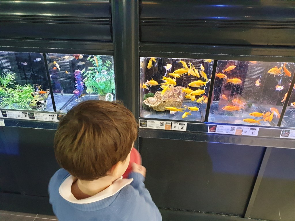 Con la pecera ya lista y con 48 horas de agua con químicos, fuimos a por los peces. Primerizos en esto de tener peces, nos aconsejaron llevarnos peces de agua fría muy resistentes. Así que nos dieron 3 peces de mierd… que yo sin gafas ni los veía. Pero que nos prometieron ser resistentes. Perfecto.